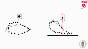 这是一个长跑运动员和短跑运动员的跑步腿部轨迹,可以明显的看到短跑运动员提膝的动作非常明显,脚尖在重心下方点地,几乎没有脚跟着地的片刻;右边的长跑选手跑姿则明显的特点就是重心没有那么高,向前提膝的动作幅度缩小到了最省力的幅度,全脚掌着地。