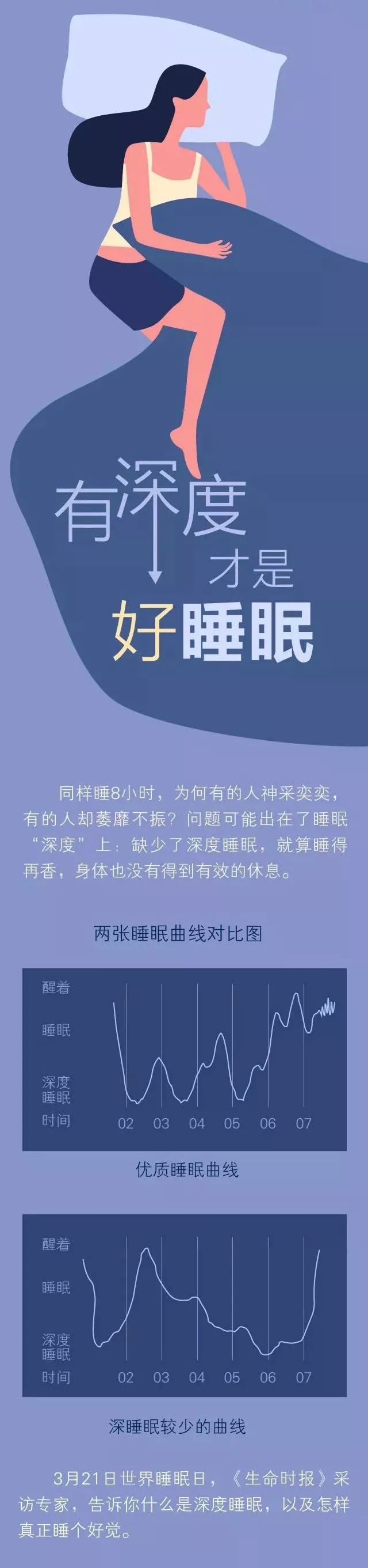 【转】健康|做好6件事让你拥有“深度”好睡眠!mkland2021年11月4日0 一生三分之一时间的睡眠,好不好直接干系人生如何了。个人觉得:白天适当运动,睡前心情平静是关键。原文链接==>有深度才是好睡眠!同样睡8小时,为何有的人神采奕奕,有的人却萎靡不振?一张图告诉你答案,一起来看吧!↓↓↓
